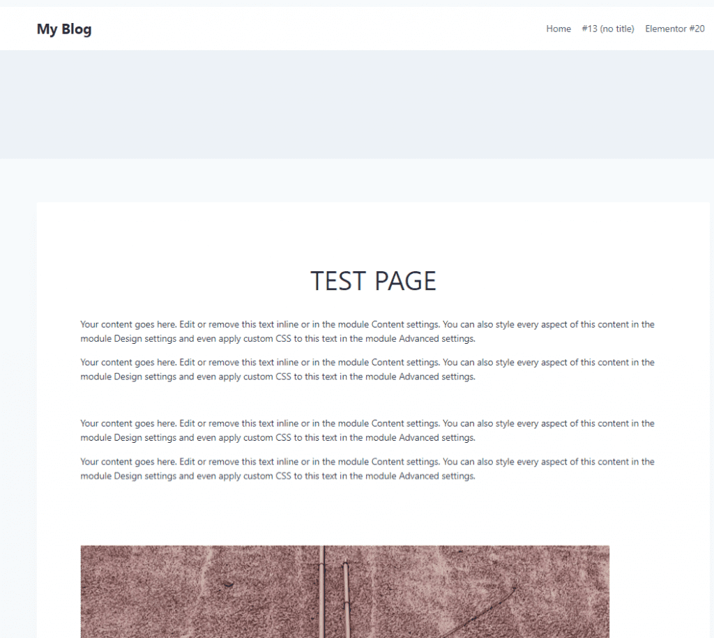 We designed this simple page using Divi Builder on Astra theme, the page consisted of a few paragraphs of text and an image just to make it more realistic. It consisted of only the header, footer, and default theme widgets. This is how the live page shows as: